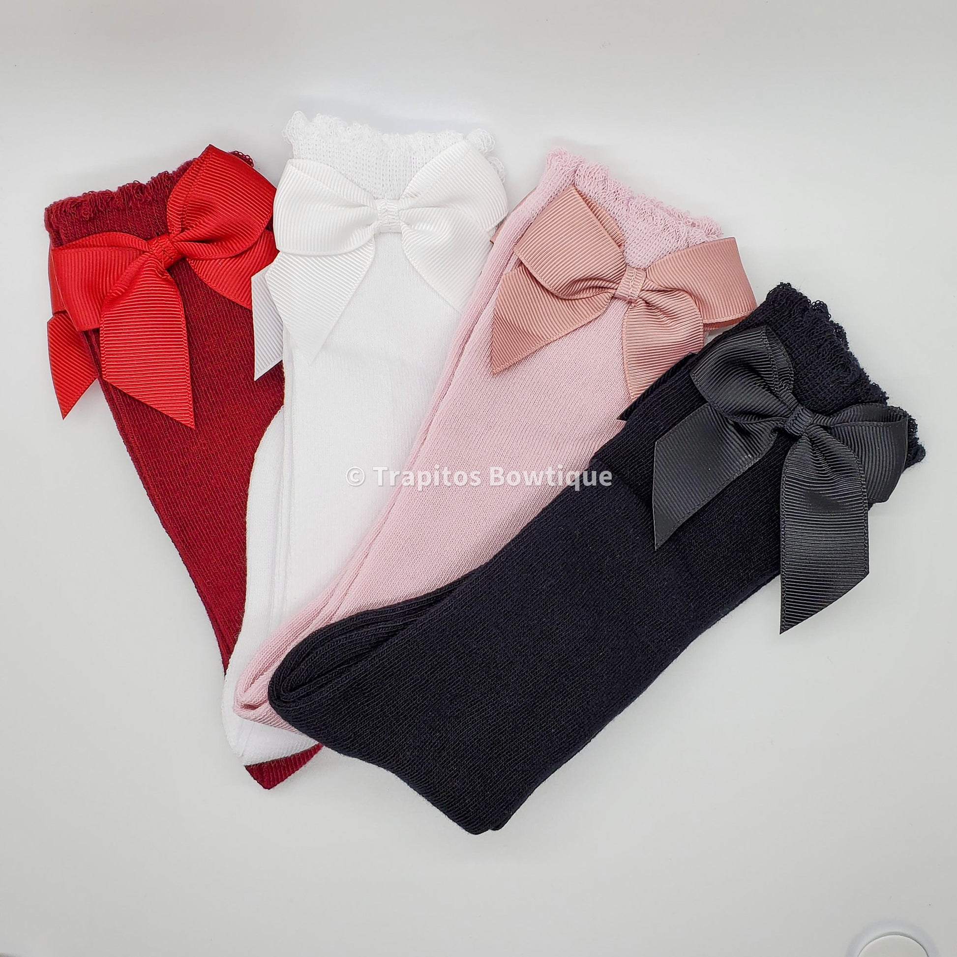 Me encanta el estilo colegial que pueden lucir las nenas para cualquier ocasion y estas Medias son el accesorio perfecto para brindar calidez, elegancia y ese toque colegial, ademas su moño lateral es el detalle mas bello que simplemente las hace unicas.