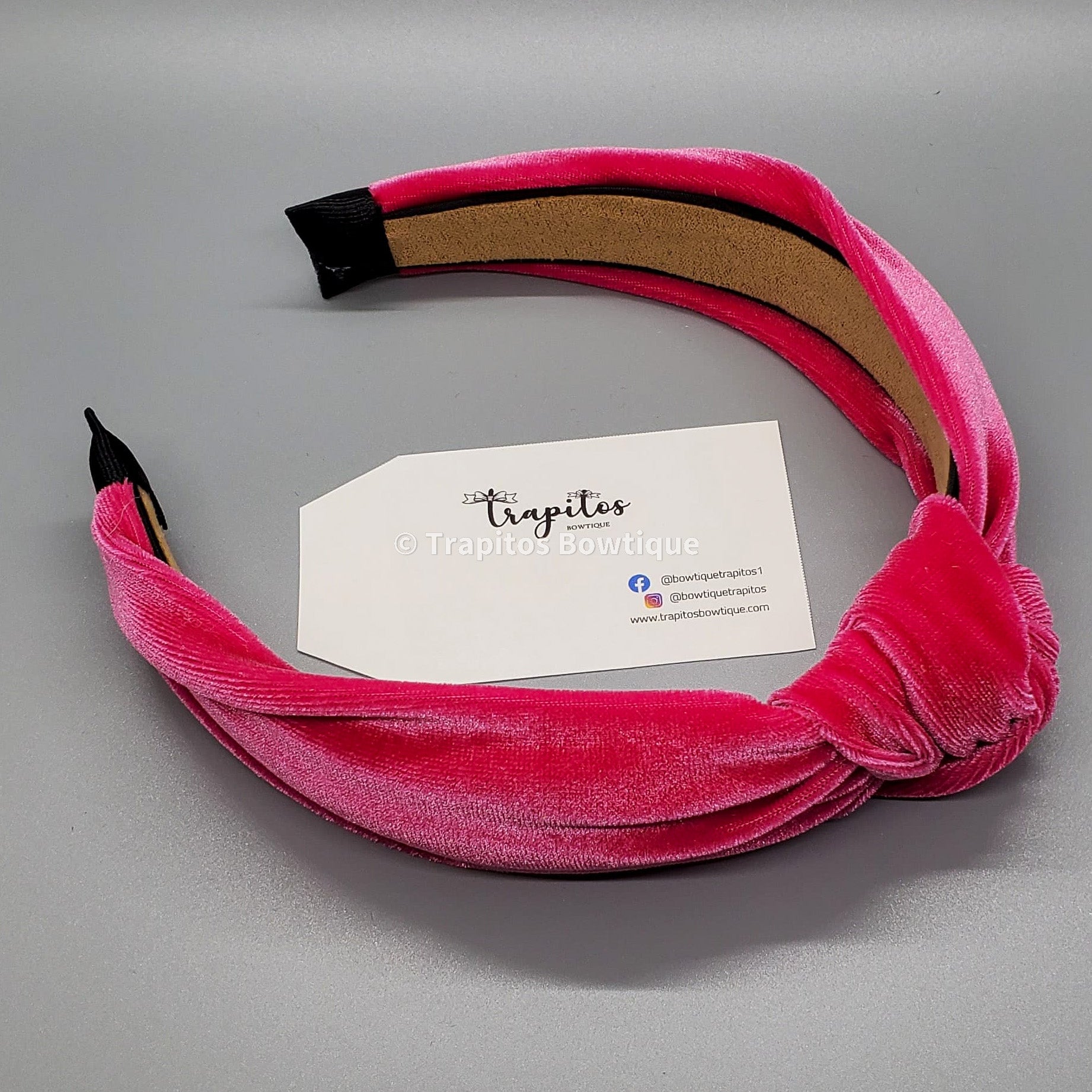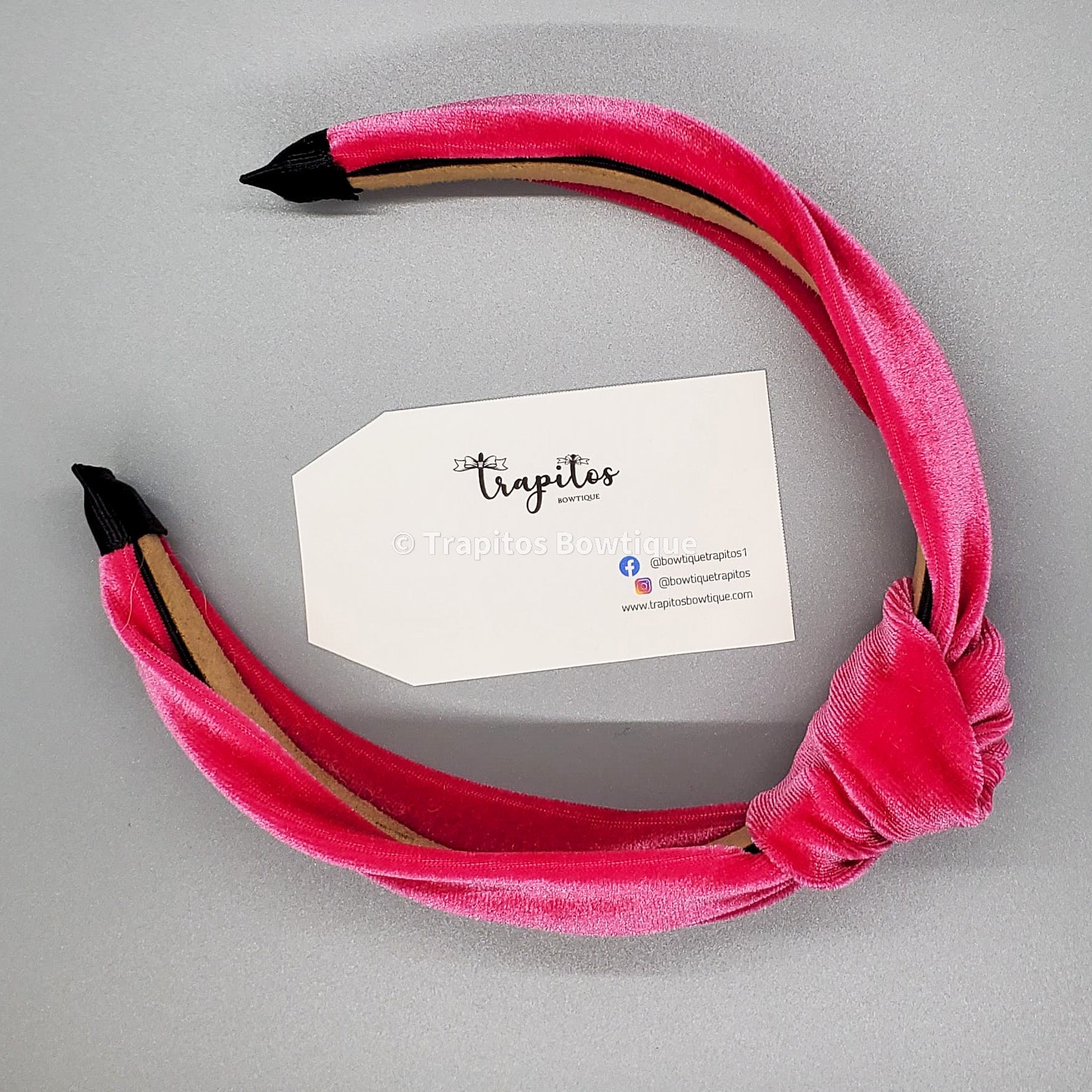 Diadema confeccionada en terciopelo Fushia con nudo en la parte superior central