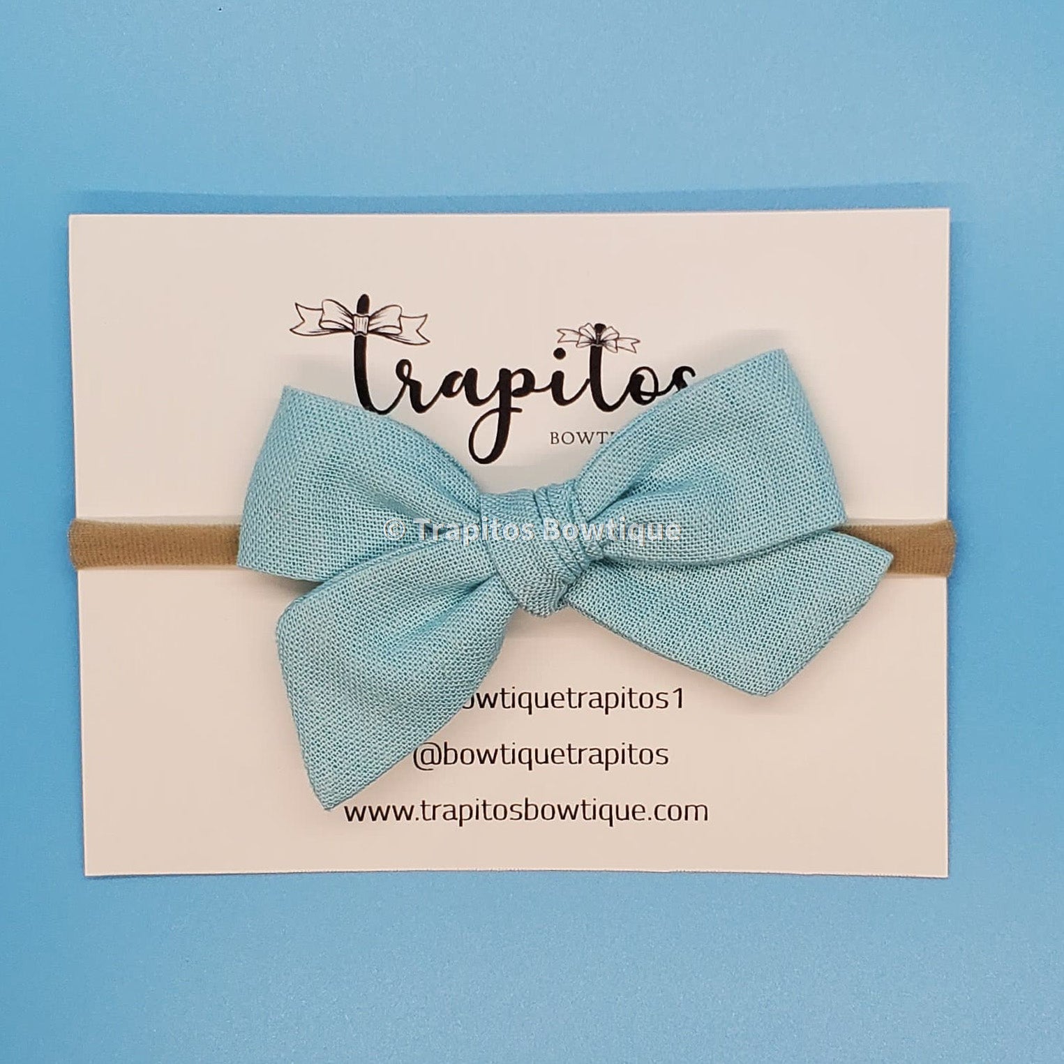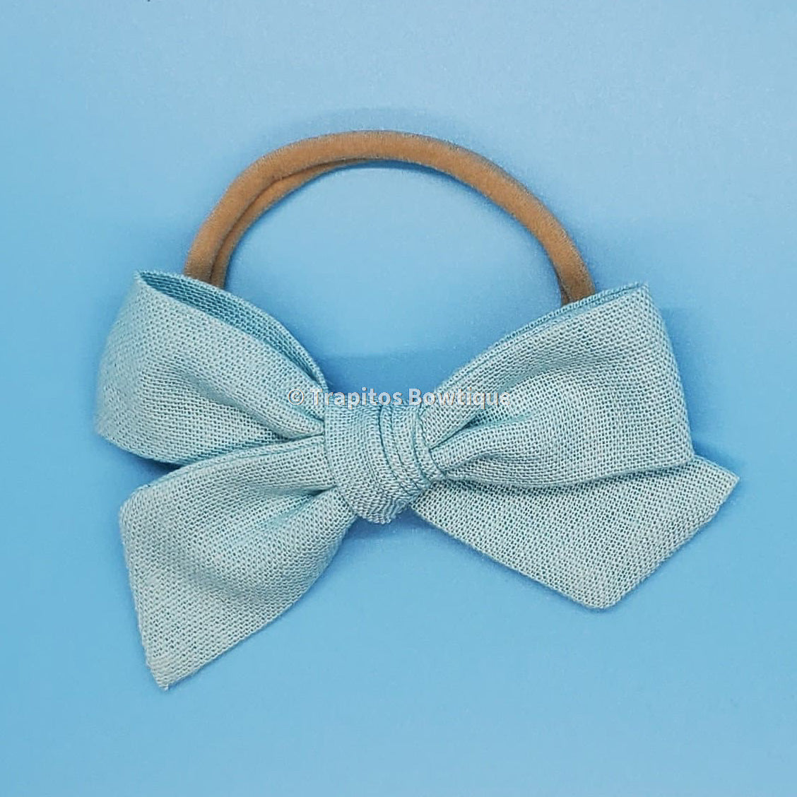 Elegante y simple moño atado a mano, confeccionado en fina tela de alta calidad. Cortado, cosido, y atado a mano, reforzado y unido a una banda elastica en color nude, super suave y autoajustable para mayor confort de tus pequeñas, ademas al paso del tiempo puedes cortarla y remplazarla por una pinza. Pasando por un alto control de calidad por mi misma antes de ser empacado y enviado hasta tus manos.
