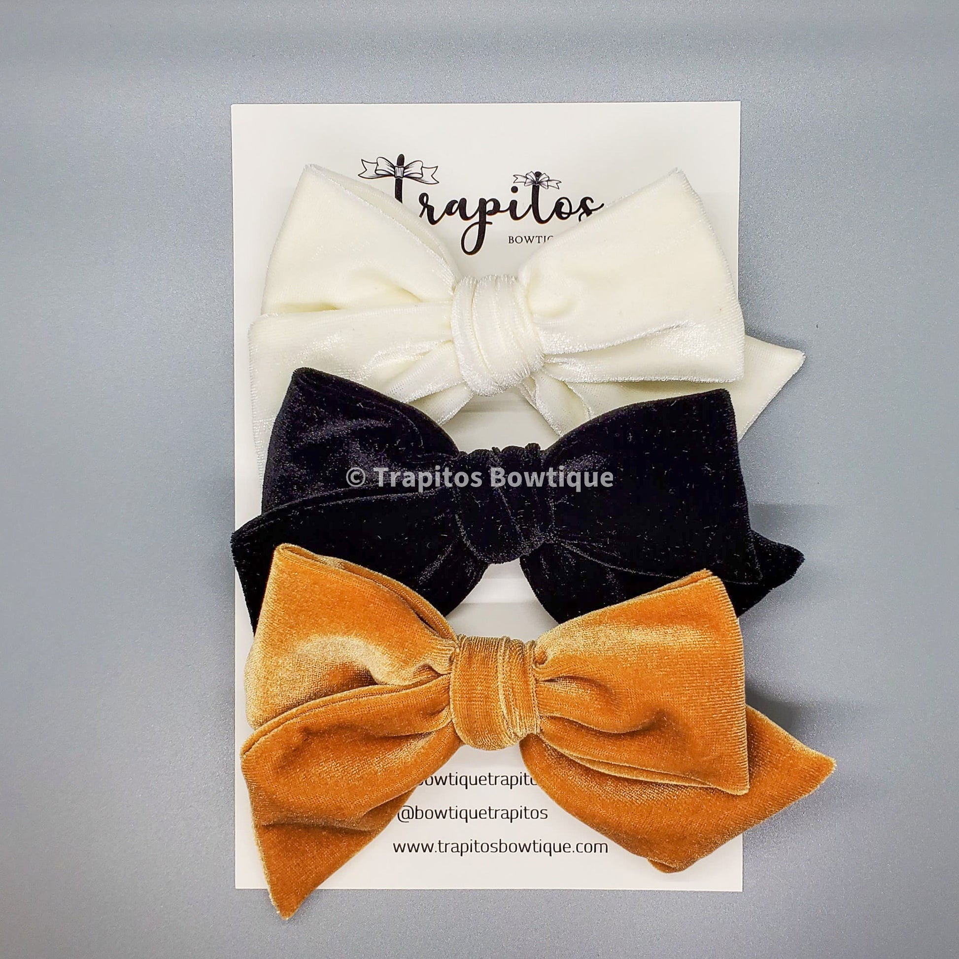 Este paquete contiene 3 remolinos medianos de terciopelo con 2 posibles opciones, ya sea en pinza o con bandita elastica.