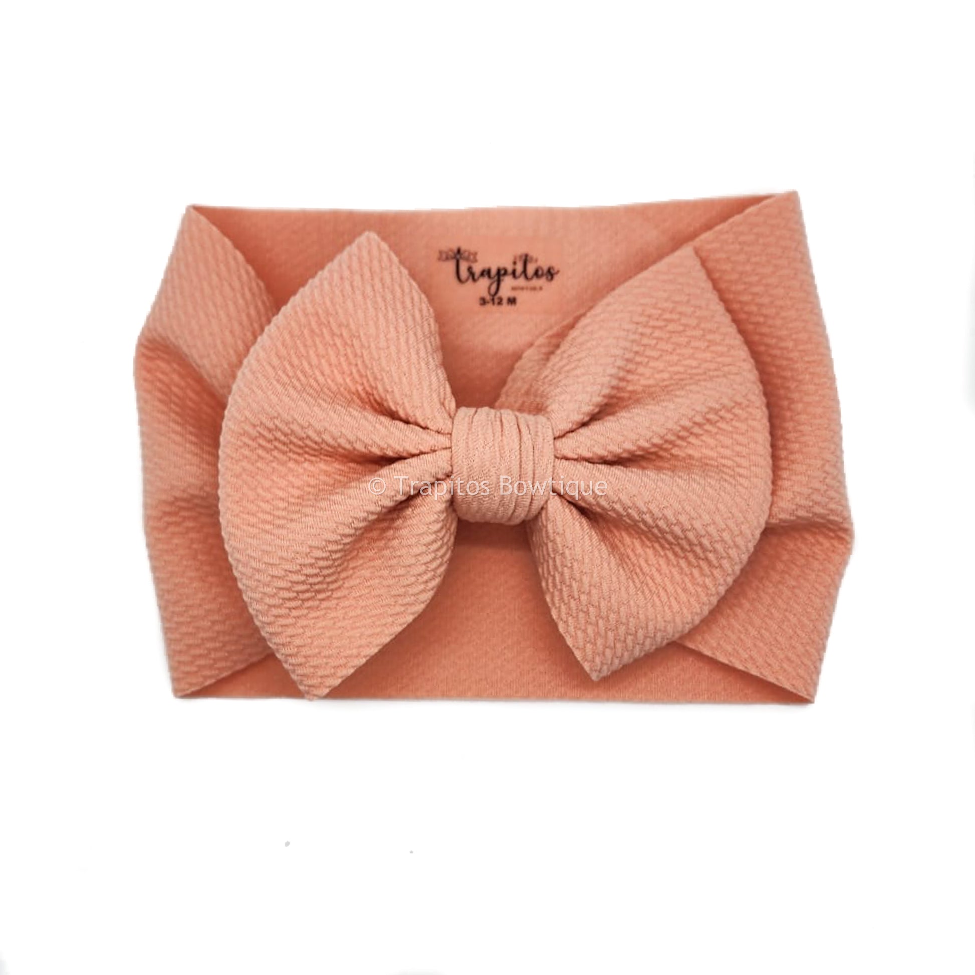 Diadema tipo turbante con moño, confeccionada en suave y elastica tela para la mayor comodidad de tu bebé y disponible desde recién nacido hasta 3 años.