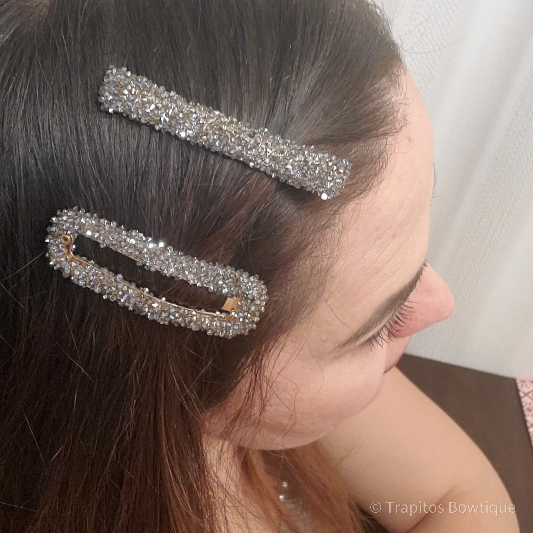 Este par de broches con piedras brillantes en color negro son el accesorio perfecto, uno viene en Snap Clip y el otro en Pinza con 2 diseños diferentes pero que se complementan.