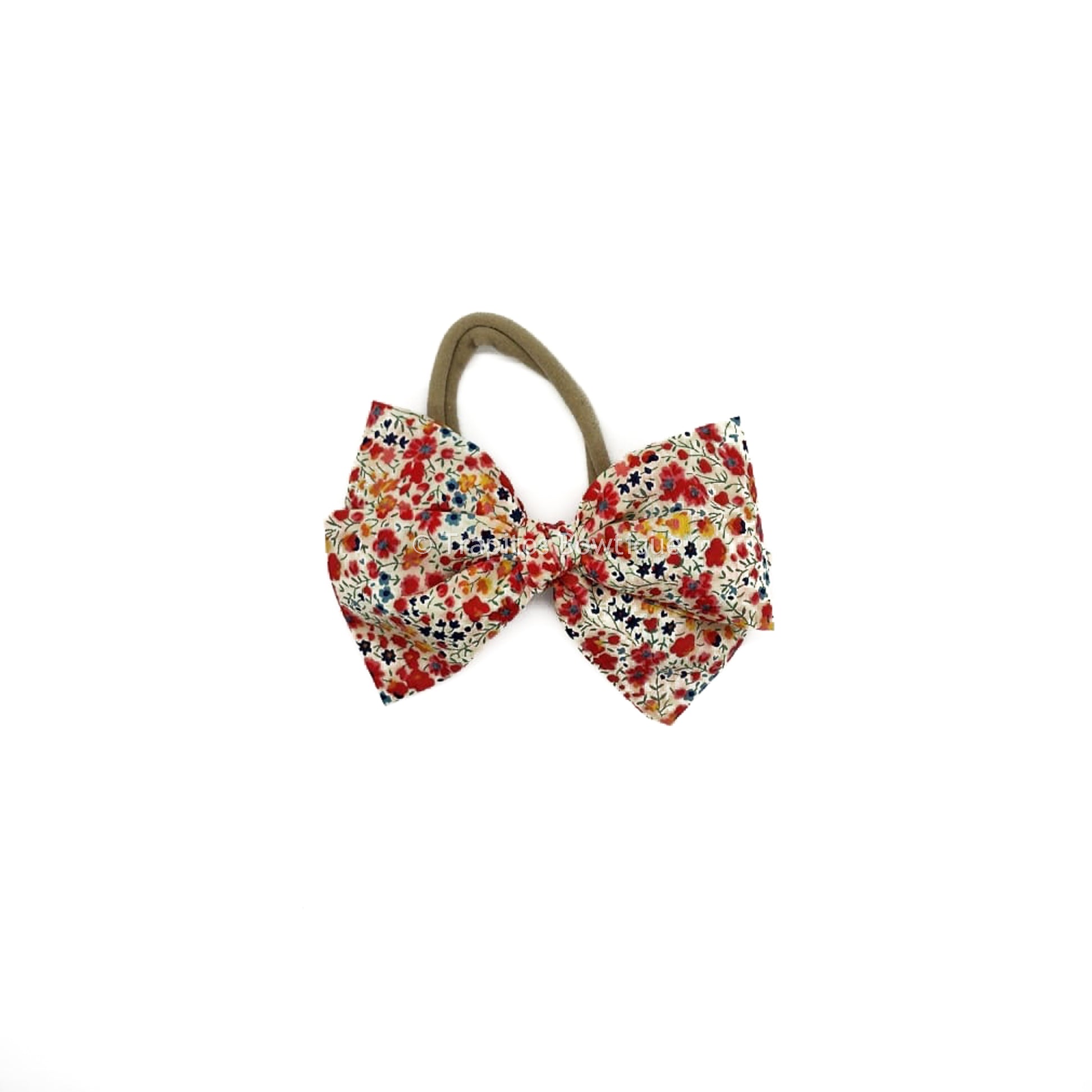 Remolino chico atado a mano con un simple nudo para adornar el cabello de tus pequeñas y darle este toque final de sencillez y elegancia a sus outfits.